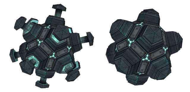 The Hopper Mine is an anti-personnel proximity mine that hops into the air towards the target before exploding, much like a bouncing betty. These mines are carried and deployed by Shield Scanners. They are vaguely dome-shaped with three sharp "legs". When dropped, the mines use these legs to bounce around until they land facing up on a smooth surface. They then jam the legs into the ground, attaching themselves very firmly.