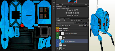 Вот вам полезный PSD шаблон (для Фотошопа) позволяющий создать свою собственную текстуру к моей Турели из Портал. Вы можете уменьшить разрешение картинки до 512x512 чтобы упростить процесс.